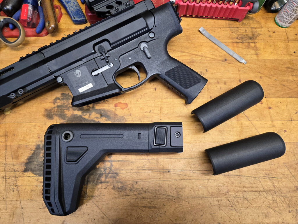 To take full advantage of the side folding stock, I decided to SBR this build. I could have braced it, but I wanted an actual stock. For the rest of the build I used Magul accessories since they were a one stop shop for what I needed. I added a M-LOK Paraclip Sling Mount, along with a simple MS1 Lite sling. For the stock I used the newly released UCS side folder. Since this was a pretty modern build, especially compared to my usual retro clones, I picked up a trio of 20 round TMAGS and a trio of 30 round TMAGs.