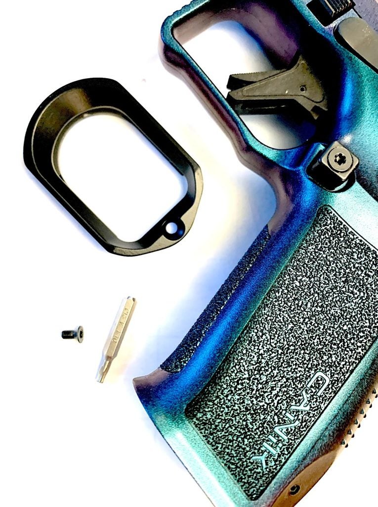 I replaced the backstrap that came installed on the gun with a smaller one. This gun’s grip is large enough that I didn’t need the extra curve in the strap, so I swapped it out. Pretty easy.