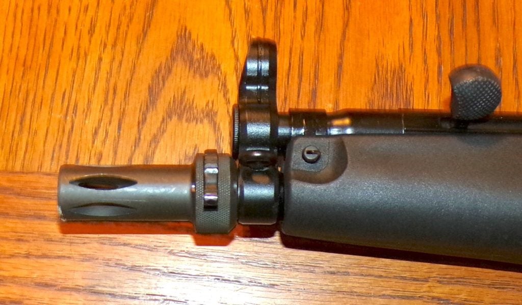 Another shot of the flash hider. If you wish, you can remove it and add a 9mm-rated suppressor using its 1/2×28 threads.