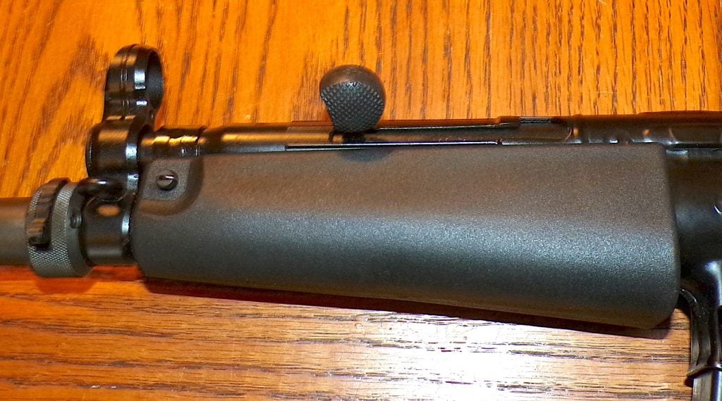 Here’s what is in the hard plastic case: an extra magazine, sling, cleaning kit, and a flexible cleaning rod. The Pic rail is not shown.