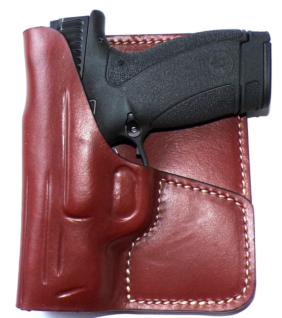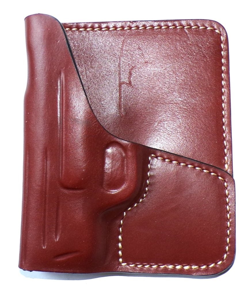 • Leather wallet holster for a wide variety of pistols and revolvers