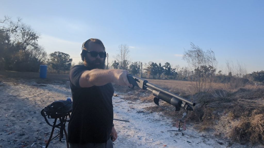 I tried to work a drill where I shot three rounds in one second. I never met that goal, but I was able to fire three rounds of buckshot onto a 10-inch gong at ten yards in 1.14 seconds. That’s still a fair bit of lead dispersed quickly.
