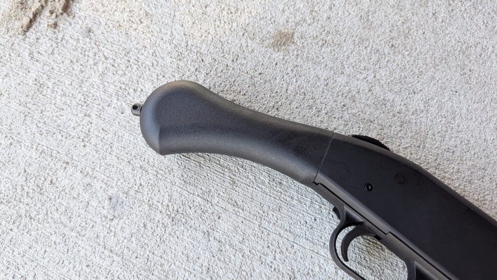It’s quite plain, but what stands out is the overall weight of 4.24 pounds. It’s super light for a pump-action “totally not a shotgun.” The Shockwave .410 is super lightweight and handy. It feels like I’m waving around a wand, not a gun—like some kind of American Harry Potter.