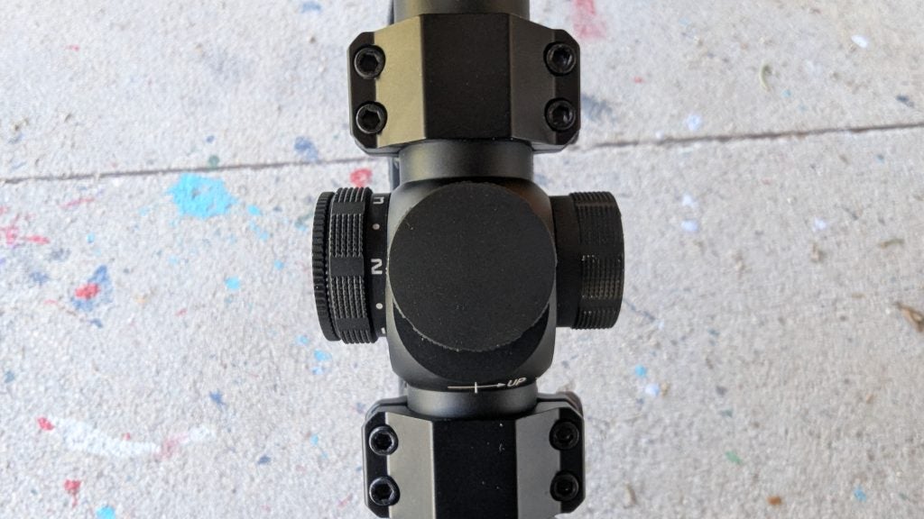 Between each brightness setting on the illumination dial is an off position. I love this style of adjustment. It allows me to switch from off to as bright as I want it instantly. The reticle is unobstructive and is a simple crosshair with a center dot and a stadia ladder descending on the bottom crosshair.
