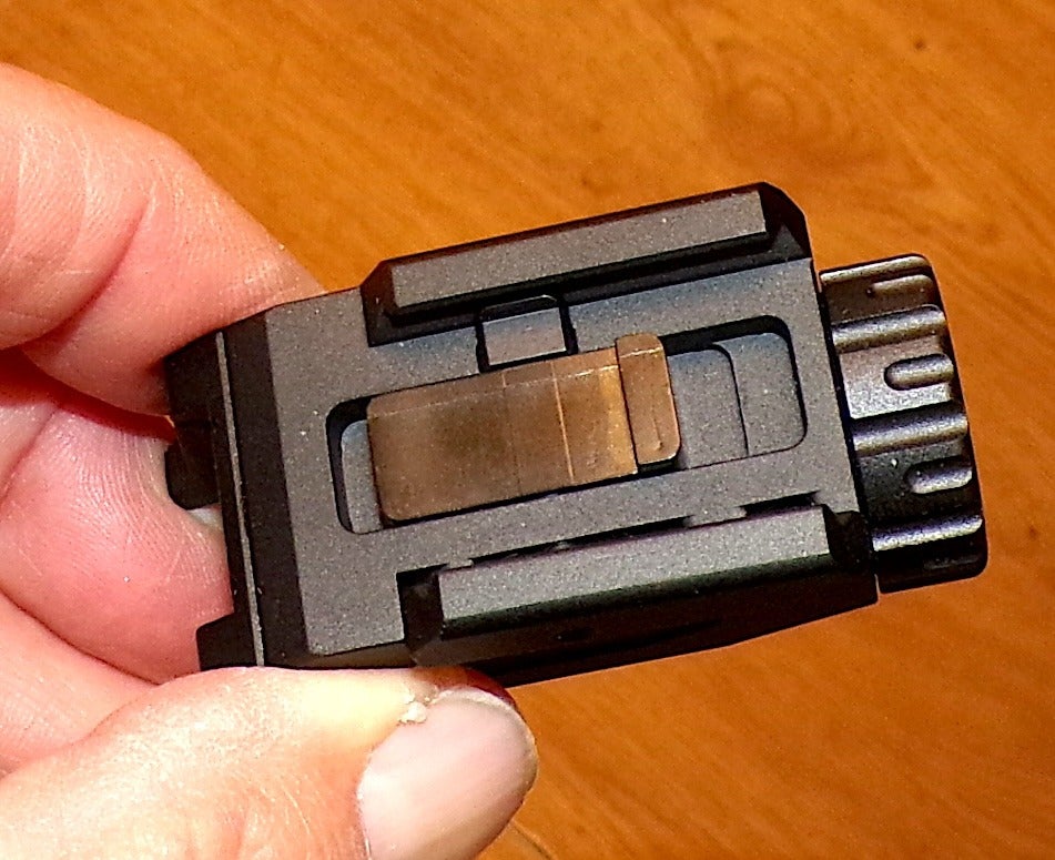 2. Mounting system. The sliding rail plate makes mounting this light easy on many pistols.