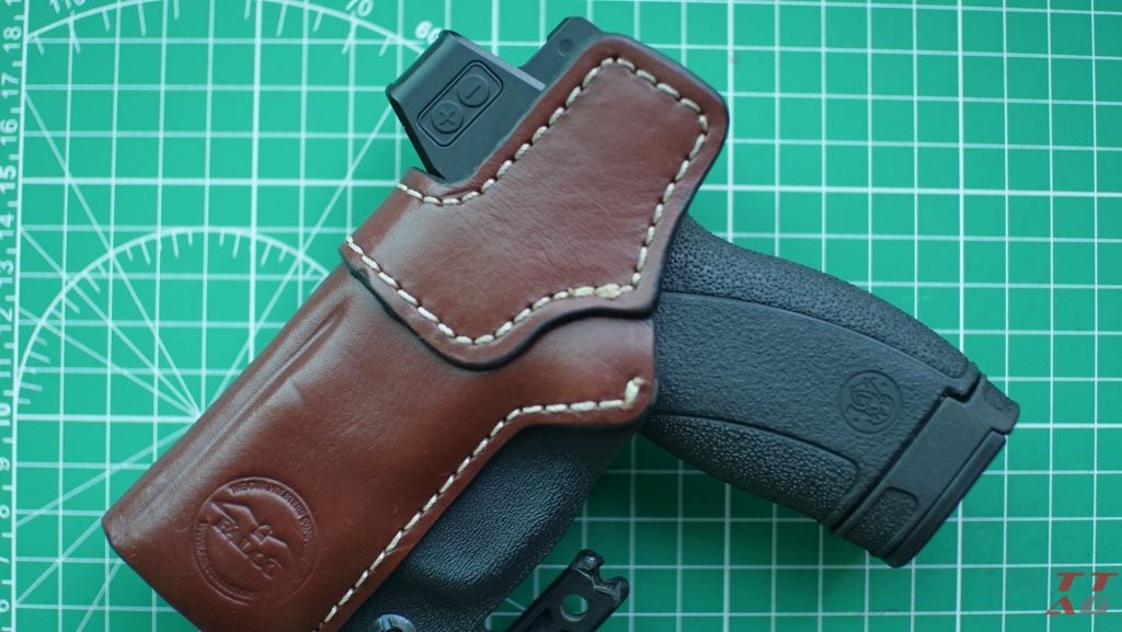 With that being said, the Pebble cleared my daily driver holster without a single hiccup. The Falco Talonguard Hybrid IWB model is still my favorite for this setup. The hybrid Kydex and leather construction locks the gun in place with positive retention, while the fitted sweat guard shrugs off a full day of carry even in damp Oregon weather.