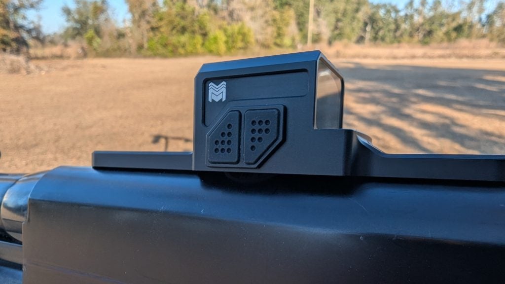 The optic sits nice and low and you can keep that great cheek weld you want with a shotgun. The buttons are big and easy to manipulate and have good feedback, as do the turrets.