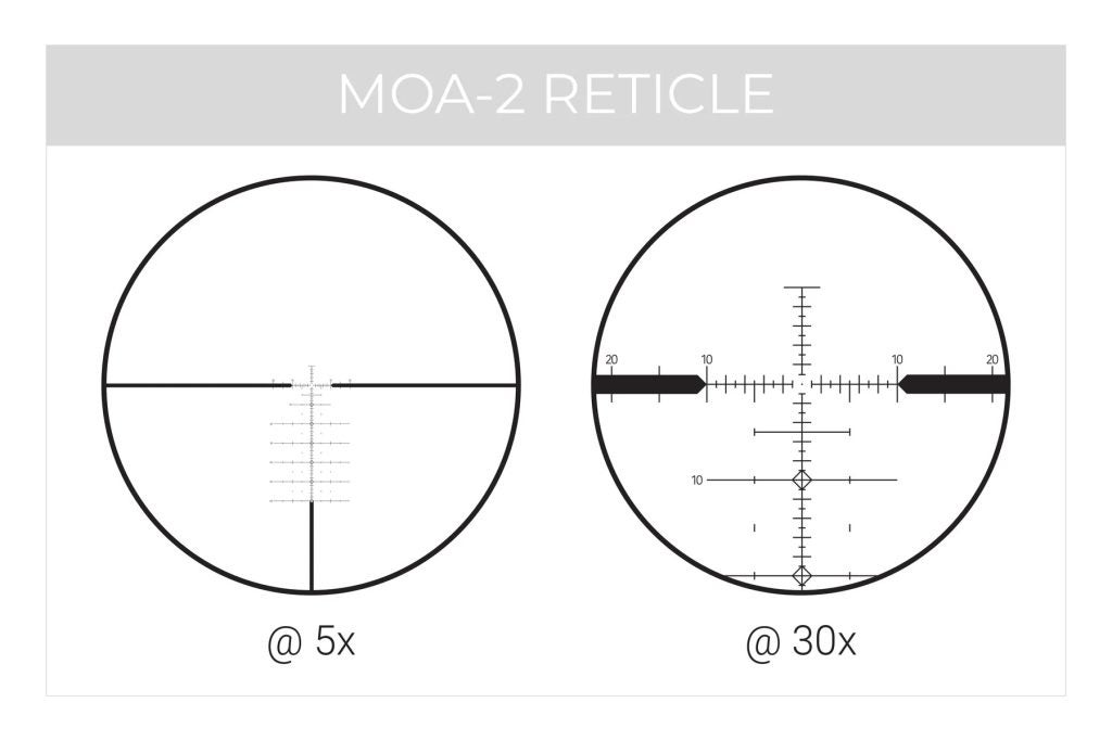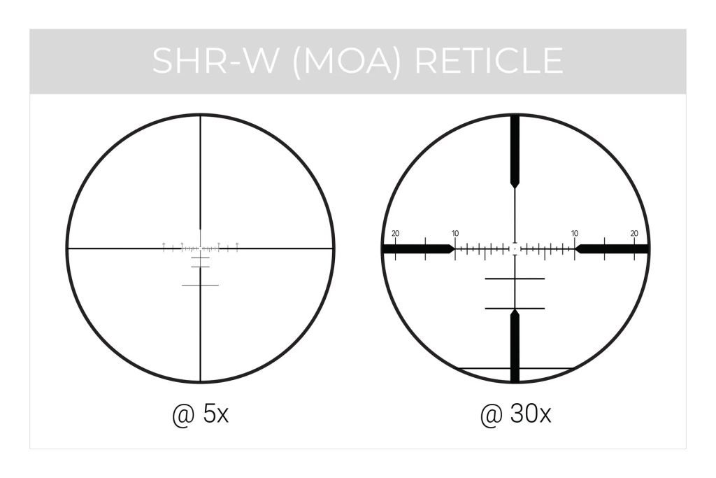 - 4 reticle options: SHR-W (MOA), MOA-2 (MOA), SHR-MIL (MIL), and CFR-MIL (MIL)