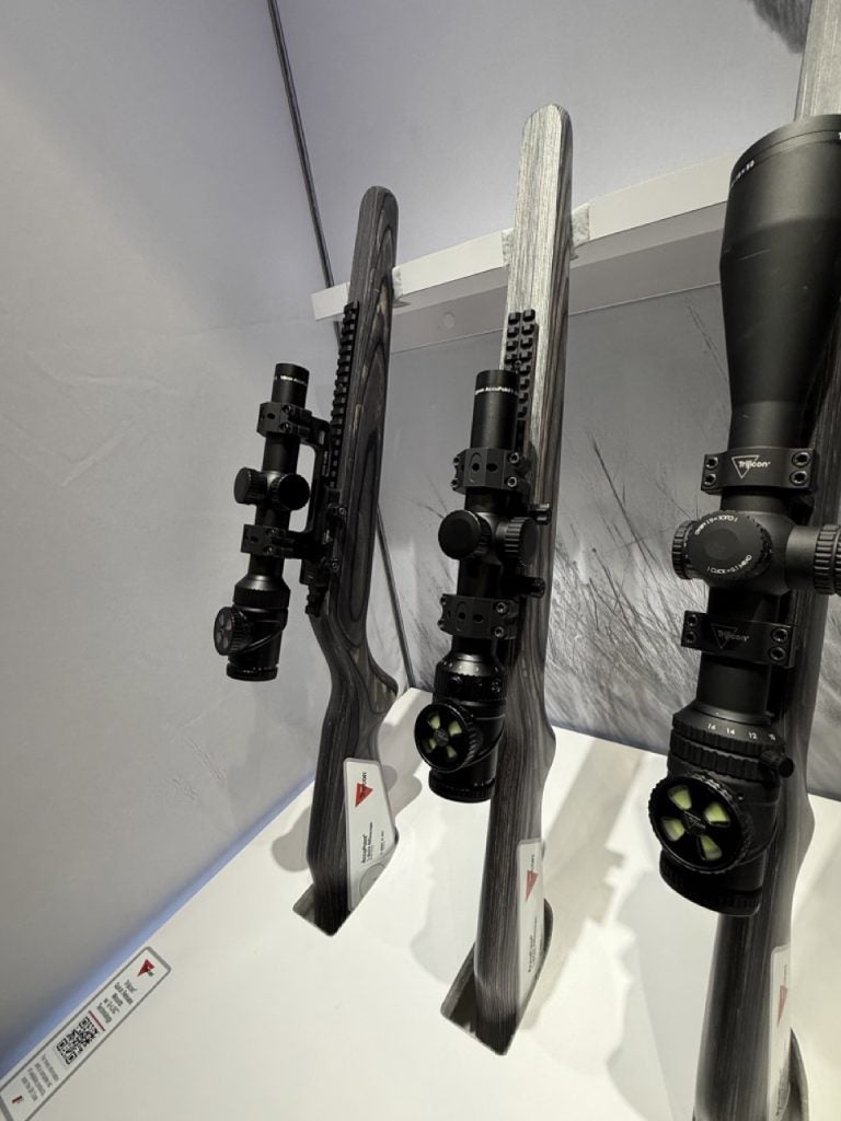 Trijicon AccuPoint 1-8×24 LPVO: Trijicon showcased their new AccuPoint 1-8×24. Developed with extensive feedback from professional hunters—from the Alaska backcountry to the plains of Africa—the AccuPoint 1-8×24 is engineered to give big-bore rifle hunters the versatility they need for any situation. Its new Hunter Holds MOA reticle enables most dangerous-game cartridges to be zeroed at 50 or 100 yards while providing intuitive 50-yard hold points out to 250 yards, ensuring confident shot placement from “too-close” encounters to extended-range opportunities. Like all AccuPoint models, the 1-8×24 features Trijicon’s advanced tritium and fiber-optic illuminated reticle, delivering a bright, precise aiming point in any lighting condition—without batteries. This dual-illumination system automatically adjusts reticle brightness to match ambient light, while the patented manual brightness override (fiber strip or fiber dial, depending on model) gives users additional control when needed. A one-gun safari is now a reality with the new 1-8×24 AccuPoint. The MSRP is $1,904. Learn more at Trijicon.
