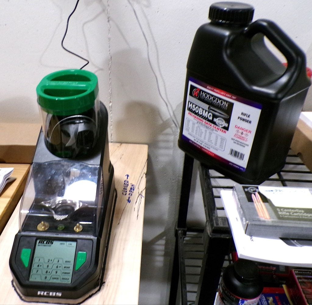 I contacted my friend at RCBS, who sent us one of their Ammomaster press kits and a jug of Hodgdon H.50BMG powder. Tracy already had cases and primers and had sourced bullets… tracers, of all things. THAT will be a fun shoot! He was good to go.