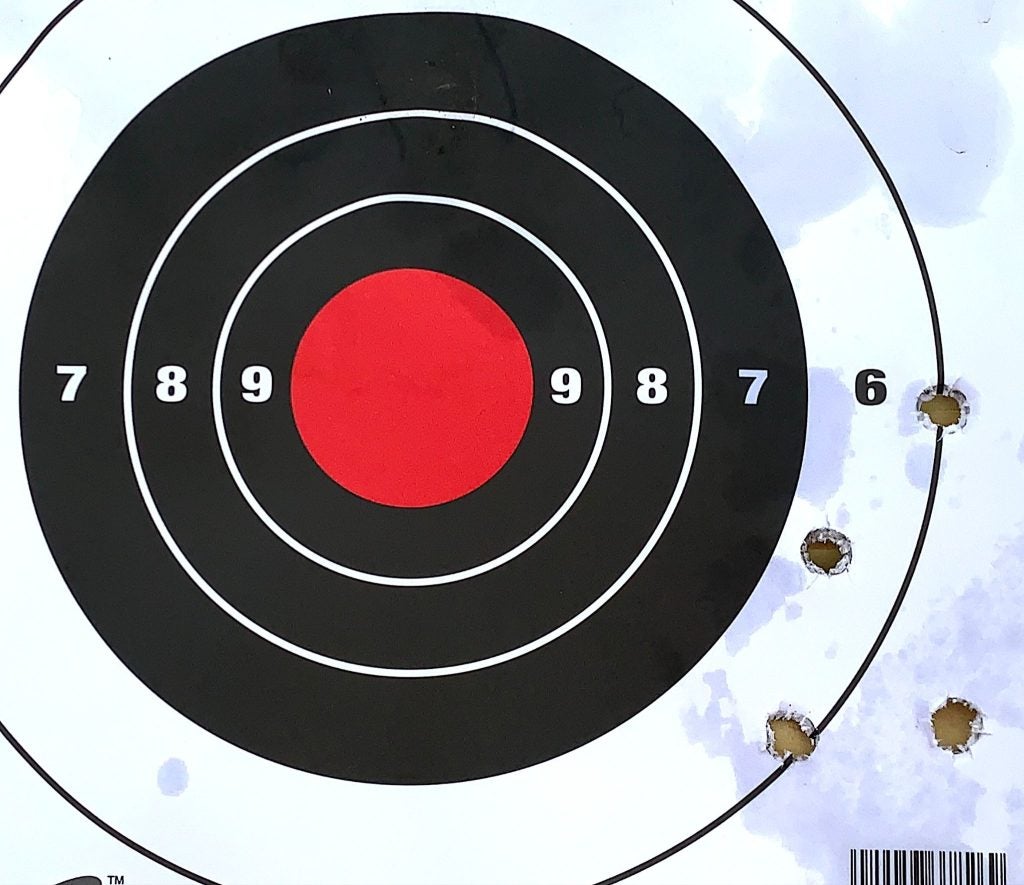 I set some targets up at 10 yards… a compromise between 7 and 15… and did some shooting. As I said, there were no malfunctions, and the gun performed flawlessly.
