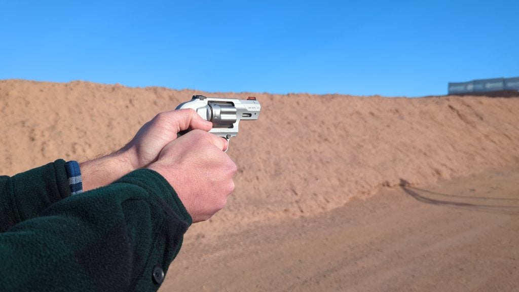 We’ve seen what happens when you use too much aluminum. Does the Colt M13 ring any bells? The 2-inch barrel and the fluted six-shot cylinder are still made from stainless steel. This makes sure the gun only goes boom in one direction.