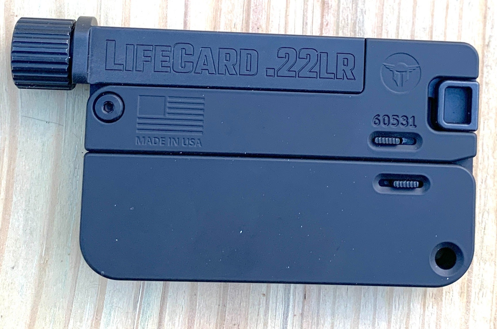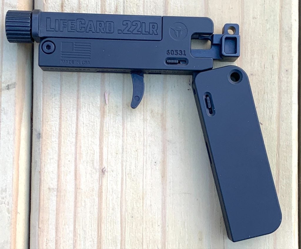 Their other innovation is a folding .22LR, wallet-sized, single-shot pistol called the LifeCard.